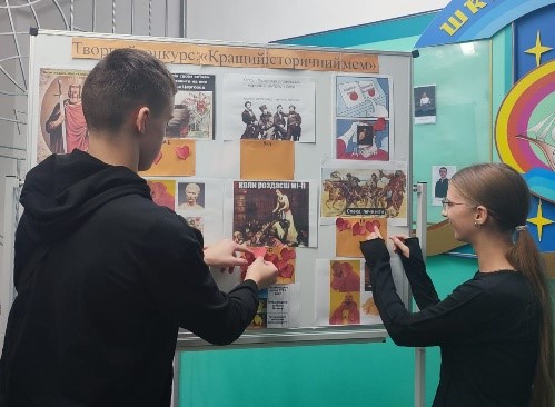 -творчий конкурс «Кращий історичний мем» серед учнів 7-11 класів. Здобувачі освіти презентували роботи, присвячені історичним подіям та постатям;