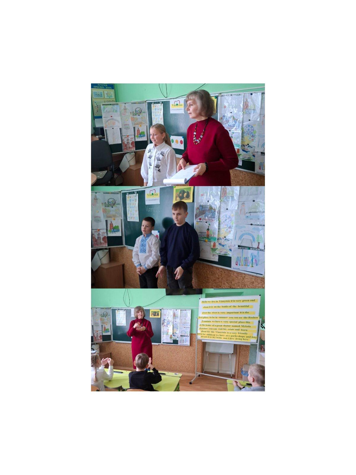 - позакласний захід для третьокласників "Я люблю Вінницю" О. Старощук провела з метою розвитку творчих здібностей дітей, підвищення інтересу до вивчення англійської мови та формування ключових компетентностей здобувачів освіти;