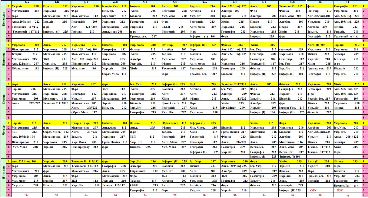 Розклад уроків школи ІІ-ІІІ ступенів на ІІ семестр 2025-2026 н.р.