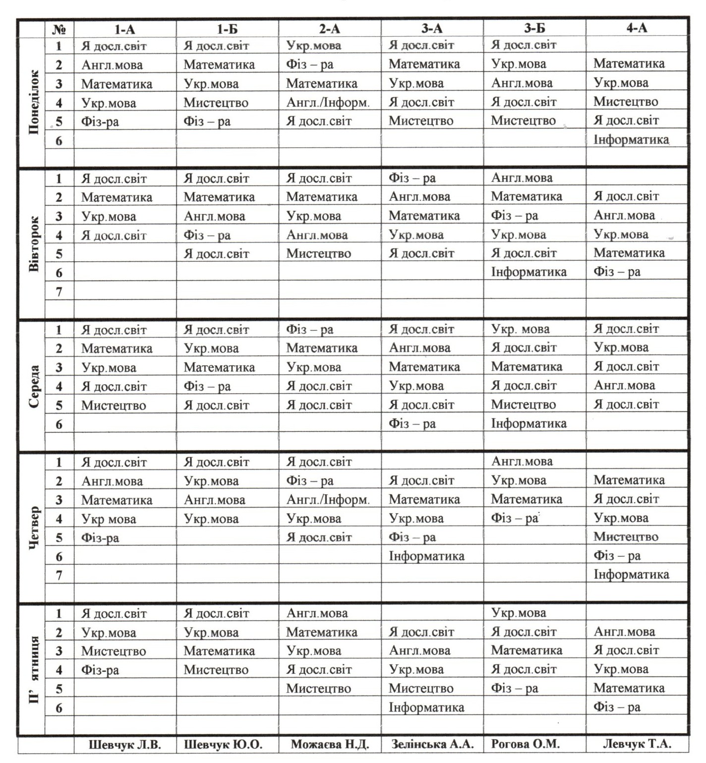 Розклад уроків початкових класів на ІІ семестр 2025-2026 н.р.