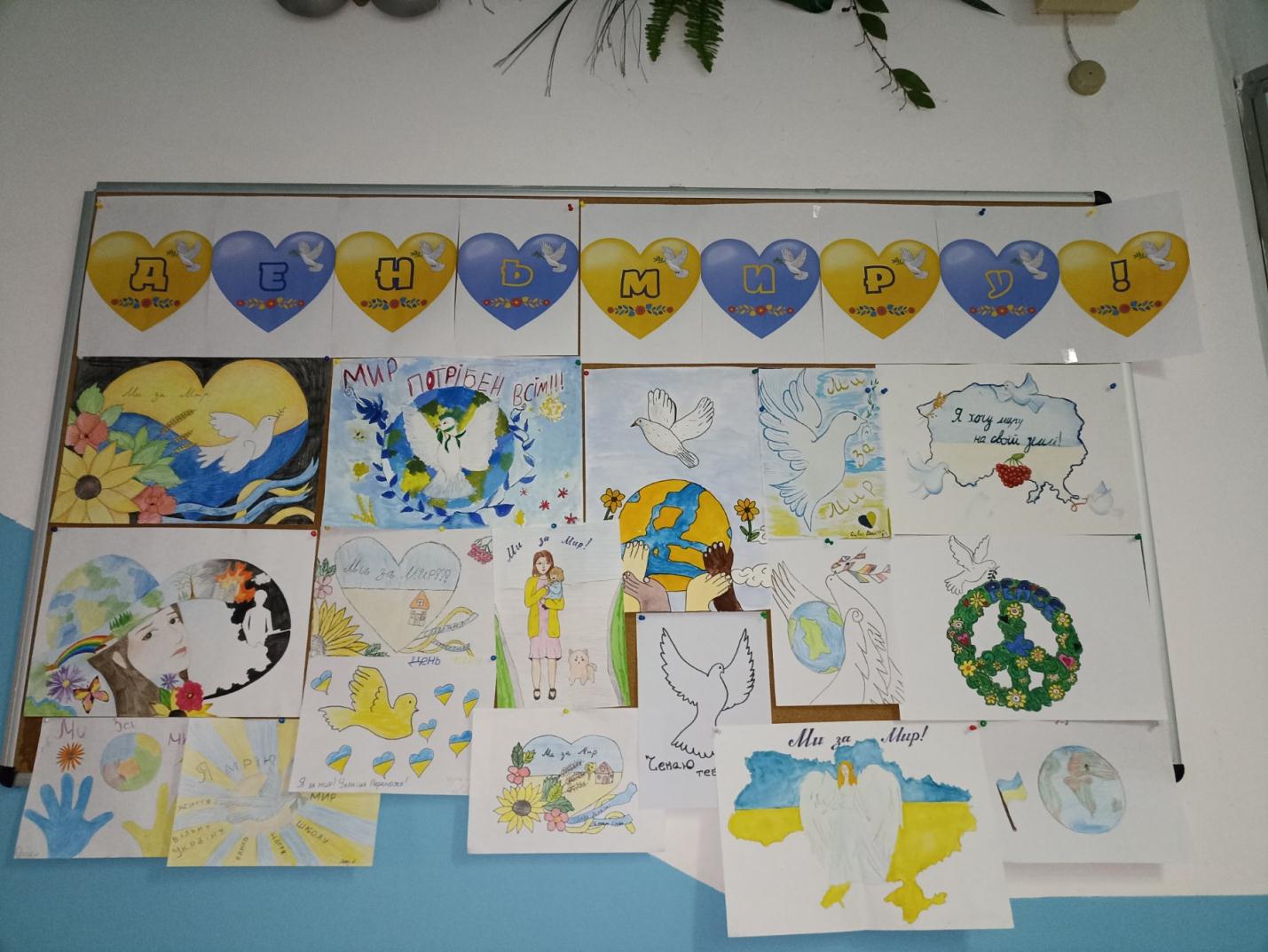 19.09.2025р. з до Дня миру в ліцеї проведено тематичну виставку творчих робіт під назвою «Мир - це...». Захід дав змогу осмислити важливість миру у світі та висловити свої почуття й думки через мистецтво. Своїми роботами діти передали власне бачення миру - гармонії, доброзичливості, взаємоповаги, єдності між людьми,висловили щирі побажання миру, злагоди.
